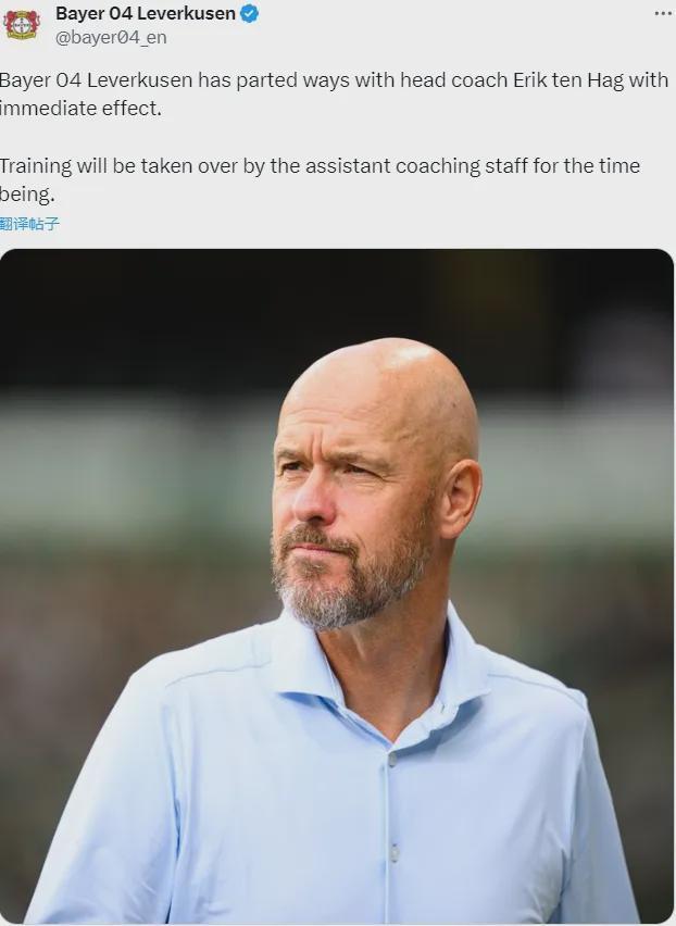 官方:勒沃库森宣布解雇滕哈格,决议立即生效。