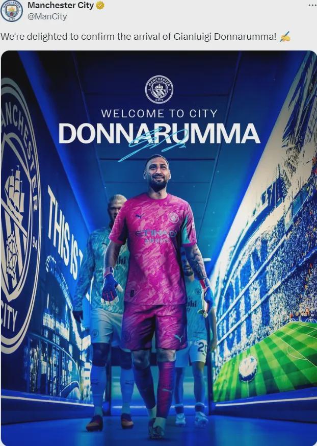 官方:曼城宣布从巴黎签下了唐纳鲁马,这名门将签下了一份5+1合同。