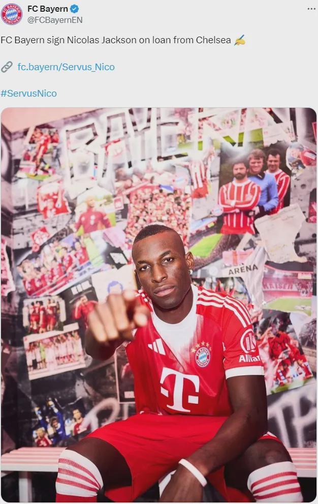 官方:拜仁宣布从切尔西签下了杰克逊。