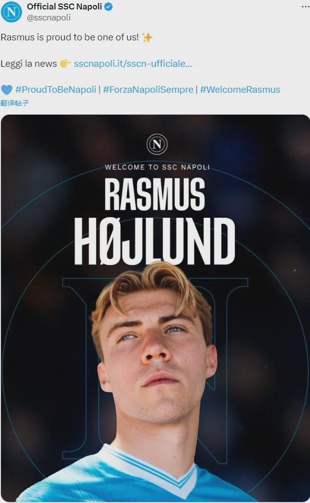 官方:那不勒斯宣布从曼联签下了霍伊伦德。