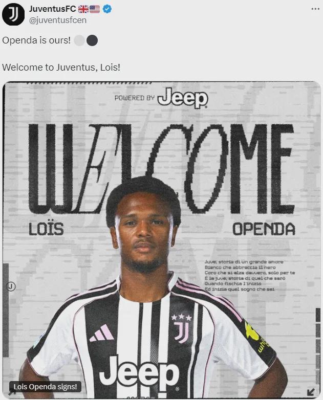 官方:尤文宣布从莱比锡红牛签下了25岁的奥蓬达。