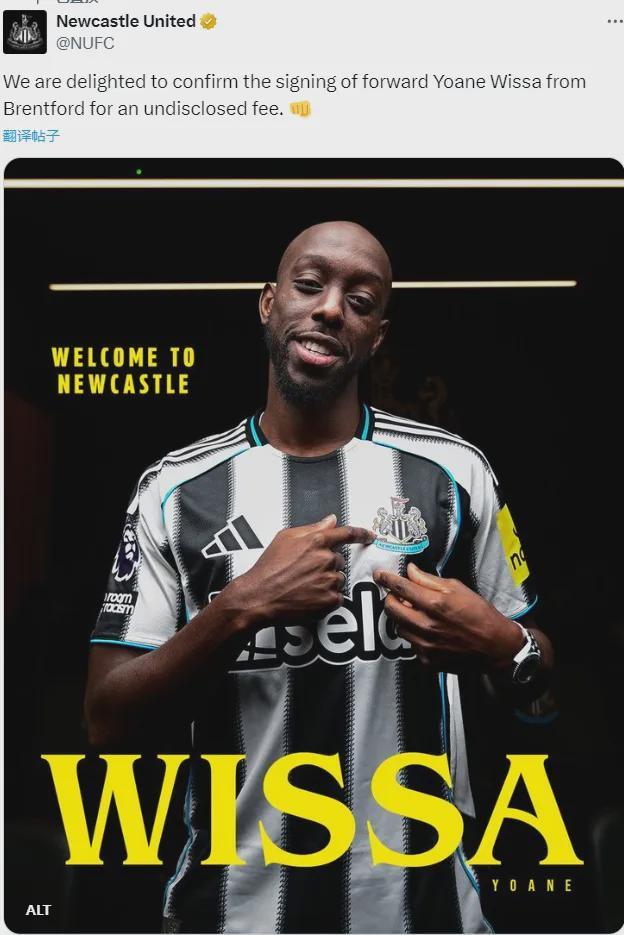 官方:纽卡斯尔宣布从布伦特福德签下了维萨,这名前锋签下了一份4年合同。