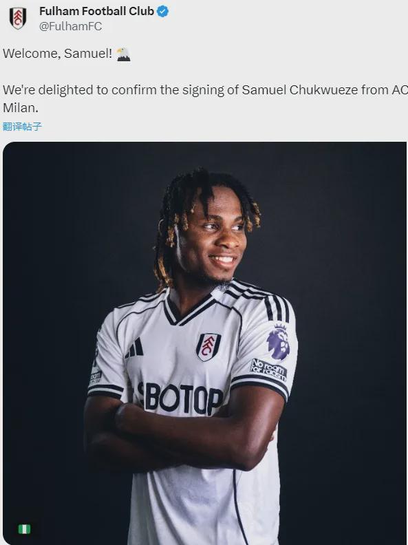 官方:富勒姆宣布从米兰租借签下了楚克乌泽。