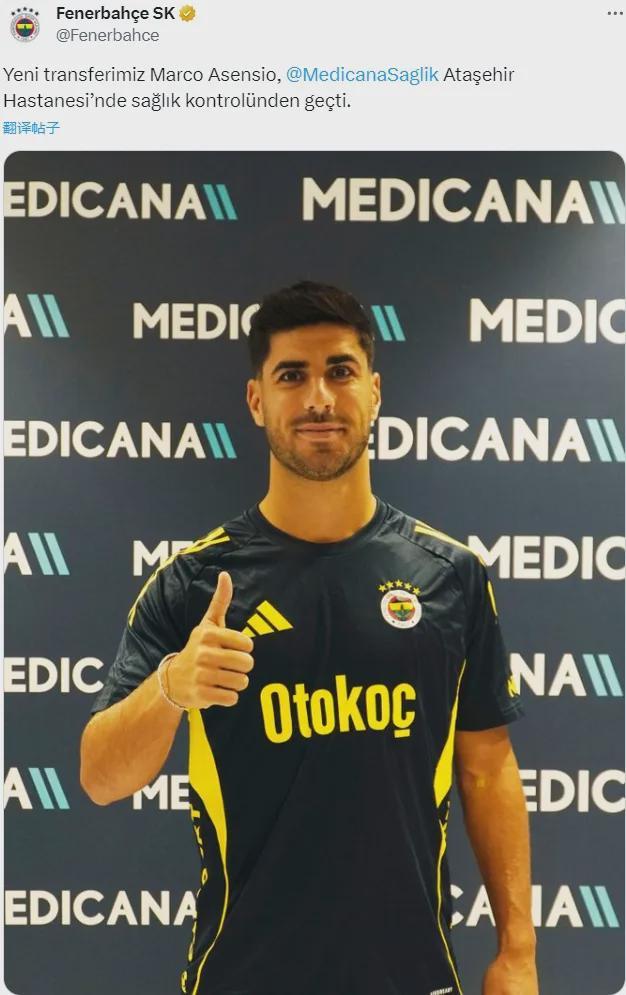 官方:费内巴切宣布从巴黎签下了阿森西奥,双方签下了一份3+1合同。